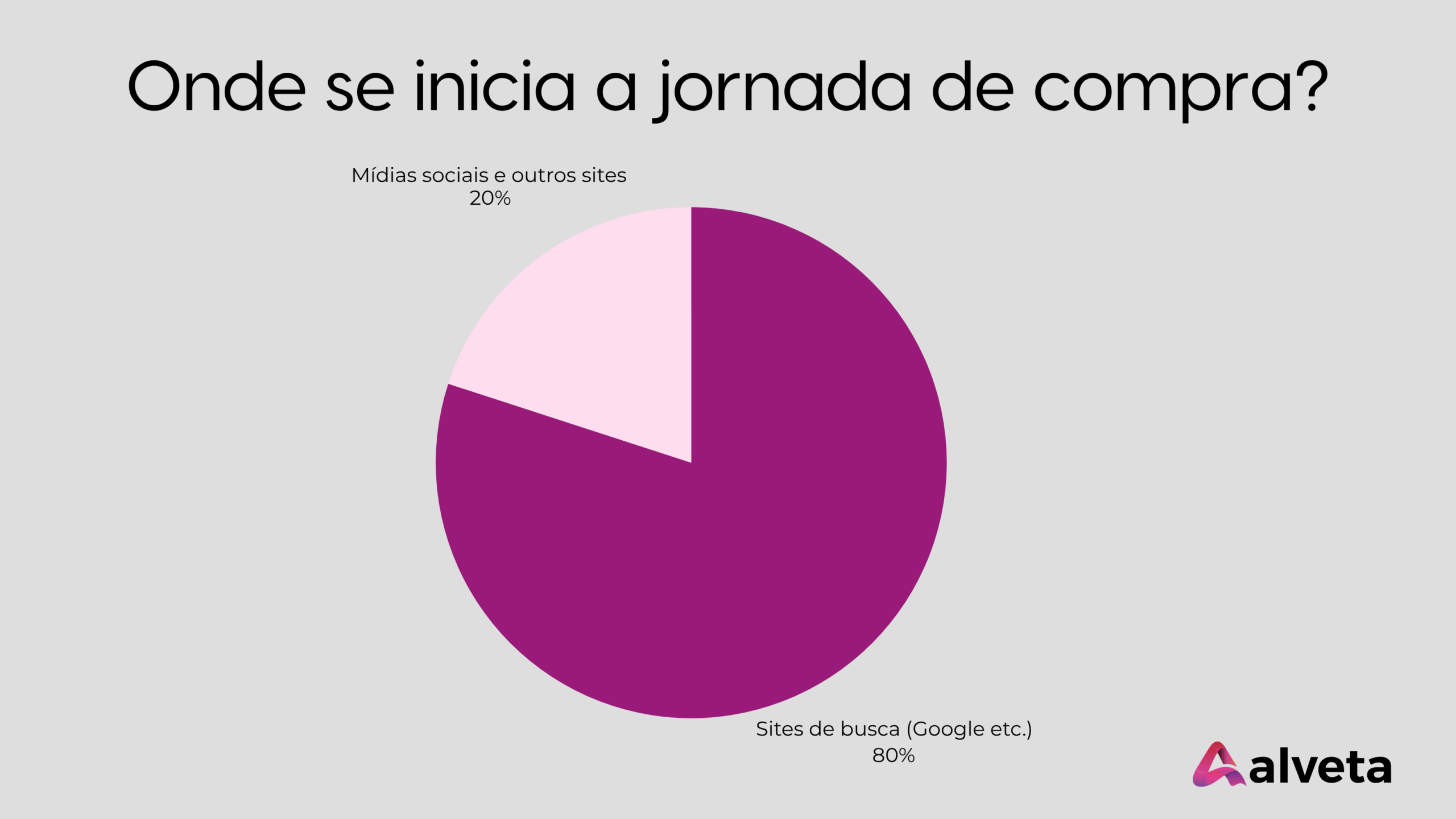 Segundo a WordStream (2024), 80% das jornadas de compra começam em mecanismos de busca. Na prática, 8 em cada 10 pessoas que procuram por um serviço ou produto, digitam no Google — não abrem uma rede social. É nesse momento que sua marca precisa estar entre os resultados de pesquisa.